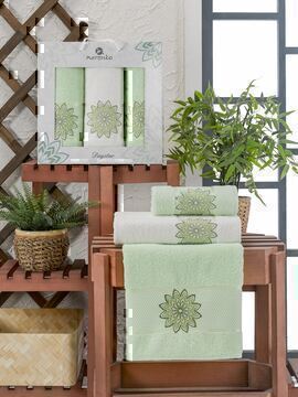 Набор полотенец махровых Daystar Merzuka<3 предмета 50*90-2шт+70*140, фисташковый> (арт.11292.11293)