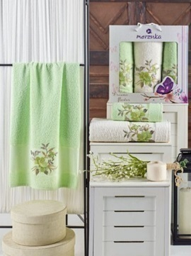Набор полотенец махровых Dreams Flower Merzuka<3 предмета 50*90-2шт+70*140, фисташковый> (арт.10677, 10678)
