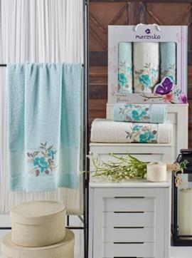 Набор полотенец махровых Dreams Flower Merzuka<3 предмета 50*90-2шт+70*140, мятный> (арт.10677, 10678)
