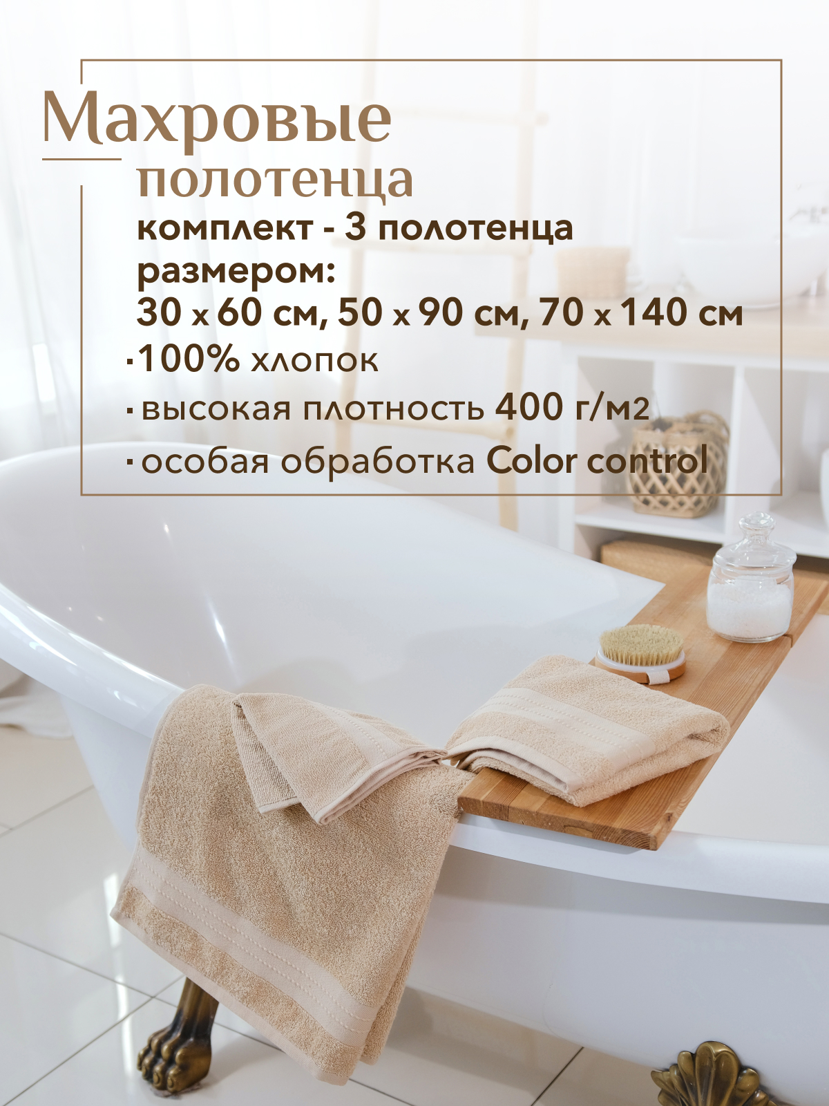 Размер полотенец: 30*60+50*90+70*140