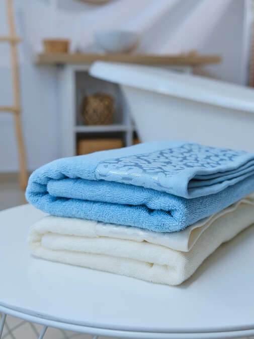 Набор полотенец махровых Сафари из 2шт (70*140+70*140) Реноме<25/062, 2 шт, 70*140, 11-0104 белый-молочный/14-4508 голубой>