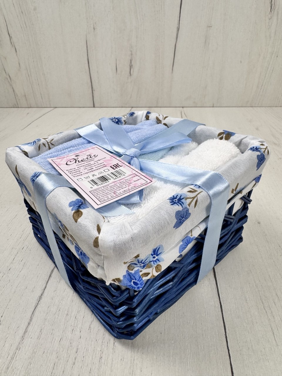Набор салфеток в подарочной корзинке Cherir/Черир М<4290018-5, 6 предметов 30*30, синий>(Новогодний ассортимент)