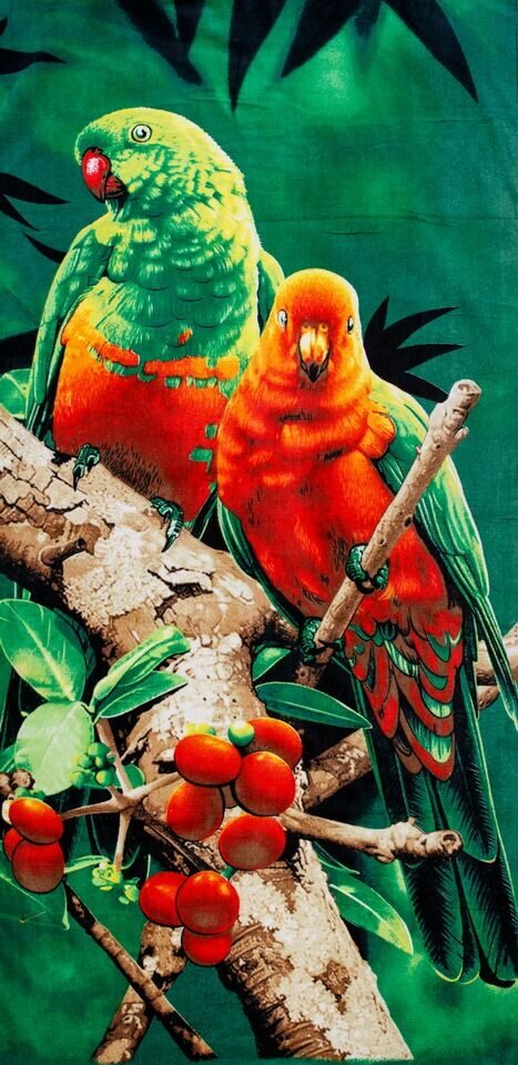Пляжное полотенце велюр-махра "Попугаи" 70*140 см. хлопок 100%