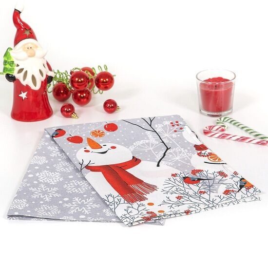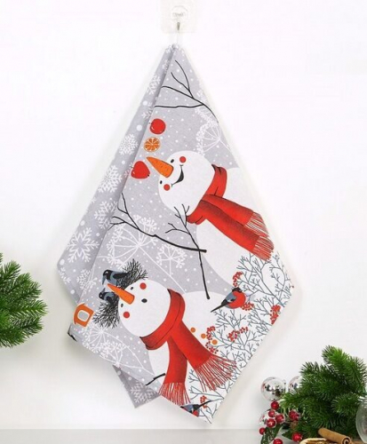 Полотенце 45*75 см. "Снеговики" рогожка хлопок 100%