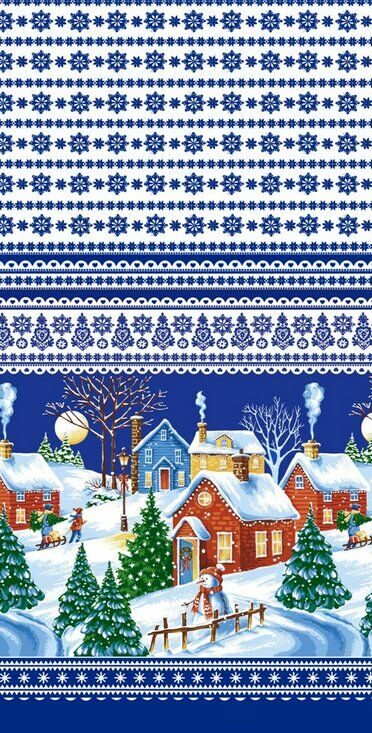 Полотенце 45*75 см. "Зимний вечер"-син. рогожка хлопок 100%