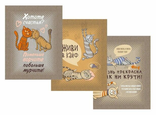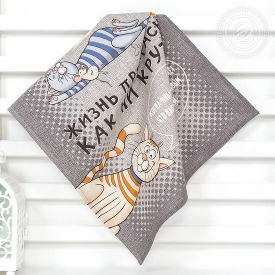 Полотенце 50*60 см. "Кошачьи тайны" рогожка хлопок 100%