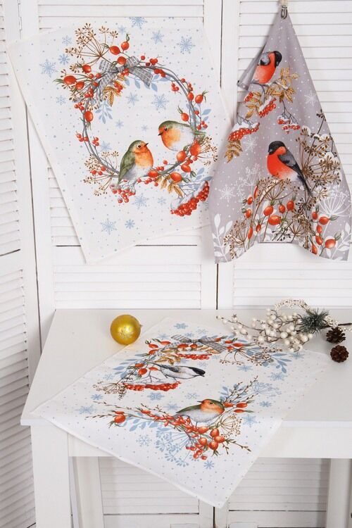 Полотенце 50*60 см. "Музыка зимы" рогожка хлопок 100%