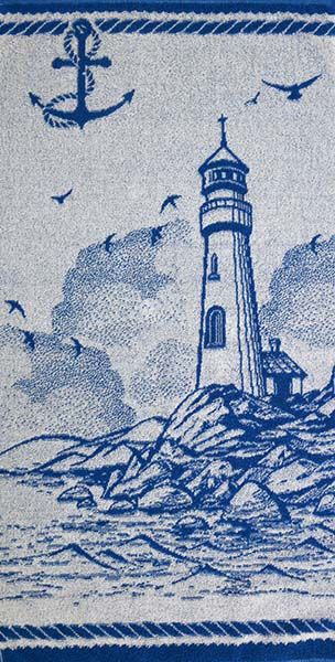 Полотенце 50х90 махровое Морское, маяк 4472 (голубой)