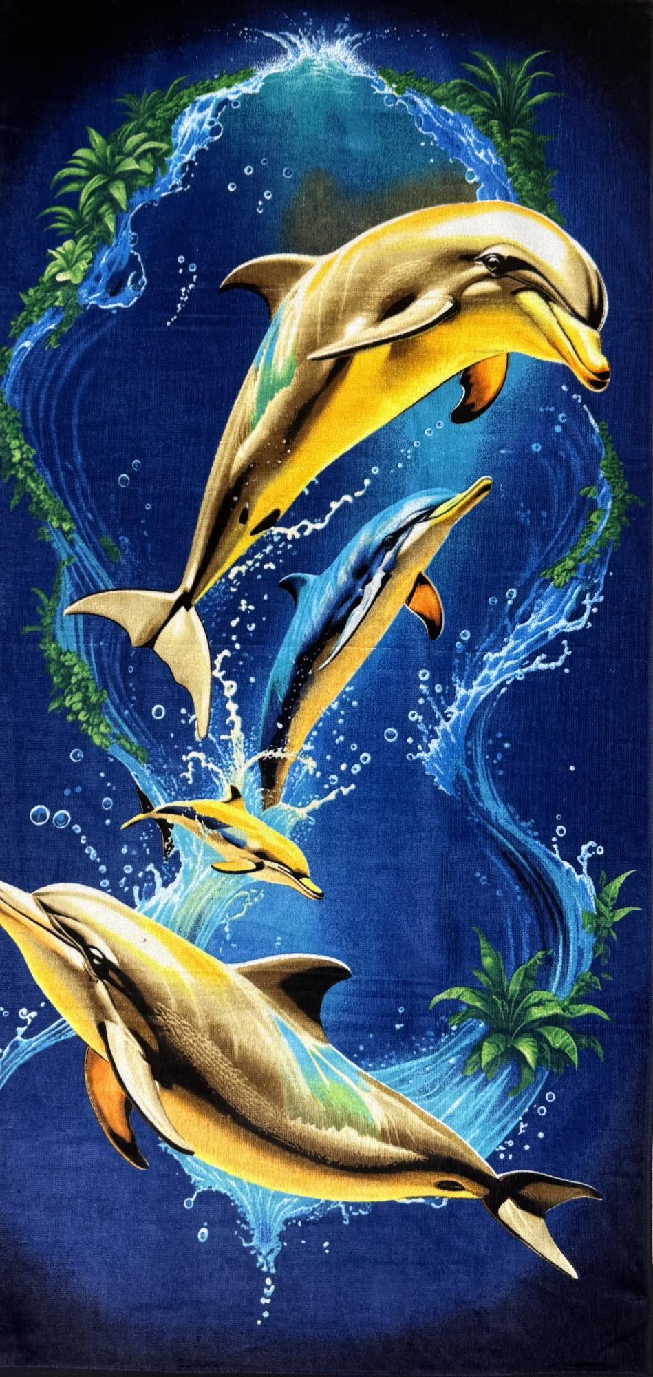 Полотенце пляжное 2519 БЕЛЫЕ ДЕЛЬФИНЫ р-р 70х140