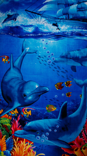 Полотенце пляжное ДЕЛЬФИНЫ С КОРАБЛЕМ р-р 70х140