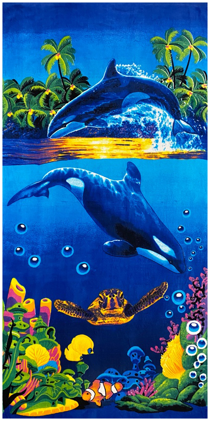 Полотенце пляжное ДВА ДЕЛЬФИНА С ЧЕРЕПАХОЙ р-р 70х140