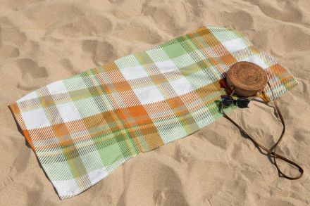Полотенце вафельное пляжное - банное 75х150 см №66 Клетка оранжевая