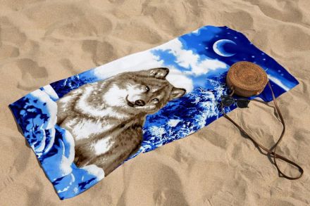 Полотенце вафельное пляжное - банное 75х150 см №101 Волк