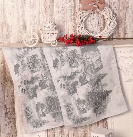 Полотенце Премиум "Дети"-сер. 50*70 см. жаккардовое пестротканое с рождественским рисунком. Изготовлено из высококачественного хлопка по классической жаккардовой технологии. Практичное и очень нарядное.Такое полотенце украсит кухню в преддверии новогодних праздников. Очень прочное и мягкое, отлично впитывает влагу, легко стирается, долго служит