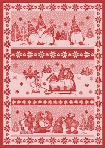Полотенце Премиум "Гномы"-красн. 50*70 см. жаккардовое пестротканое с рождественским рисунком. Изготовлено из высококачественного хлопка по классической жаккардовой технологии. Практичное и очень нарядное.Такое полотенце украсит кухню в преддверии новогодних праздников. Очень прочное и мягкое, отлично впитывает влагу, легко стирается, долго служи