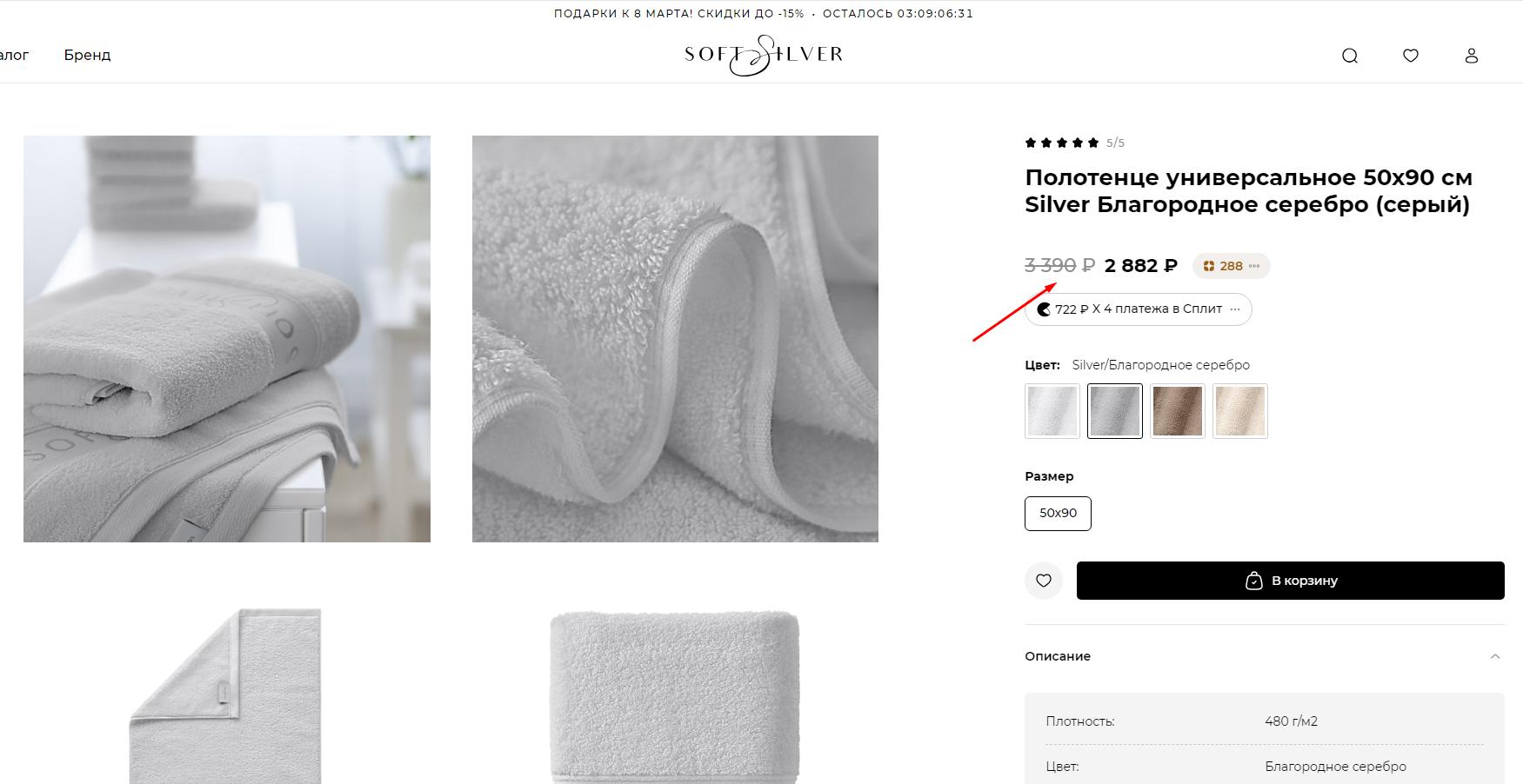 Полотенце SOFT SILVER из пряжи Zero-Twist с нулевым кручением нитей, которая придаёт особую деликатность изделиям. Махровое полотно с настоящим серебром создано по технологии AGTex, обладает научно доказанными антибактериальными свойствами, дольше остаётся чистым и свежим, нейтрализует бактерии даже в условиях повышенной влажности ванной комнаты, помогает сохранять чистоту и красоту кожи.