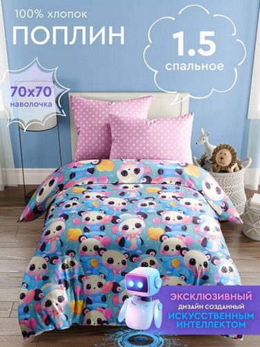 КПБ "Панды" поплин хлопок 100% 1, 5 сп.