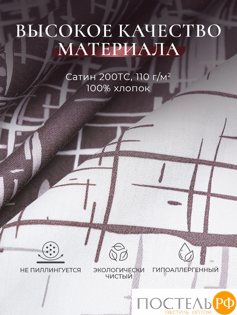 Комплект постельного белья выделяется стильным и современным дизайном. Одна сторона оформлена в светлом оттенке с абстрактным коричневым узором, состоящим из тонких линий и геометрических форм, создающих эффект динамики и движения. Этот узор в сочетании с нейтральными цветами придает комплекту легкость и изысканность. На другой стороне представлена более насыщенная цветовая палитра с аналогичным светлым узором, что позволяет легко менять облик спальни в зависимости от настроения. Двусторонний дизайн делает этот комплект универсальным выбором для современных интерьеров в стиле минимализма или скандинавского дизайна, добавляя в них нотки стиля и современности.