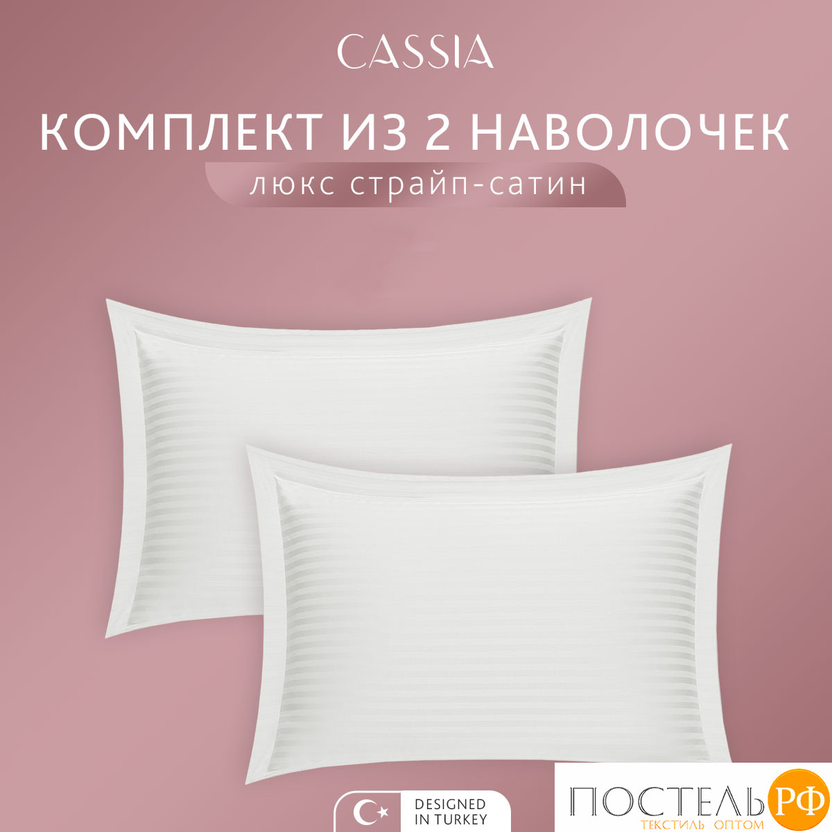 Комплект наволочек бренда CASSIA коллекции «ЛЮКС Страйп Сатин» размером 70х70 - 2 шт.