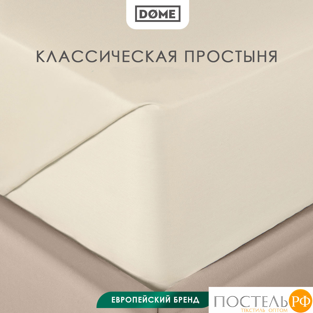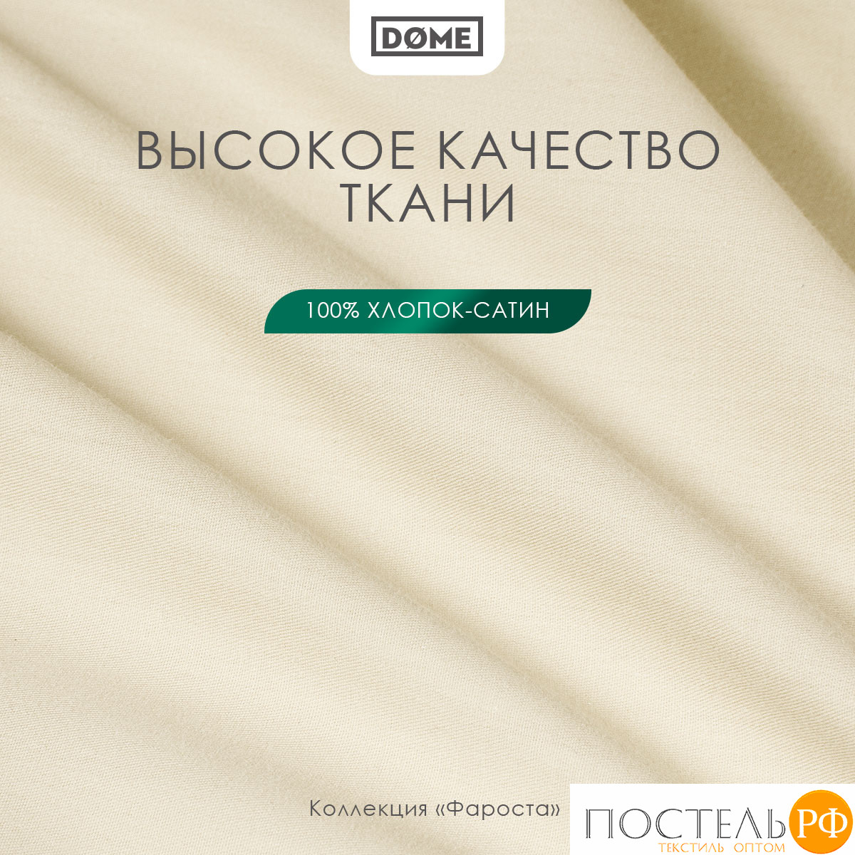 Простыня без резинки в размере 180х220 см коллекции «ФАРОСТА» бренда Dome изготовлена из натурального хлопка в плетении сатин высокого качества плотностью 110 г/м2.