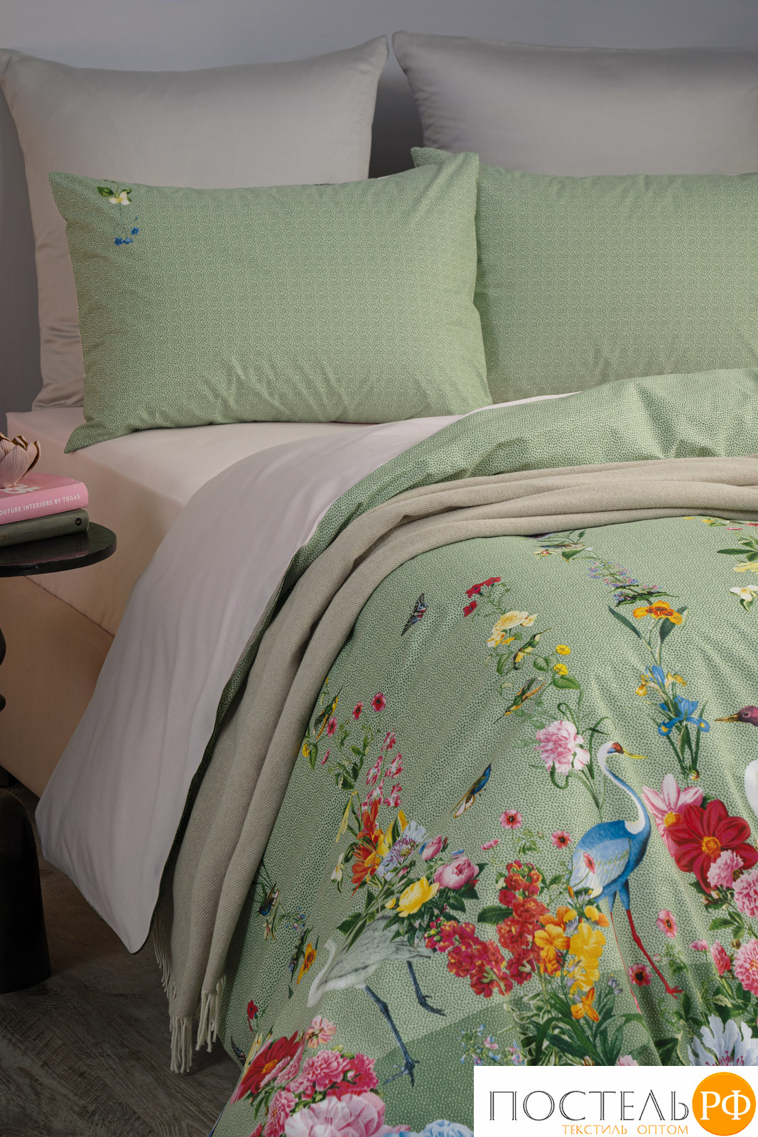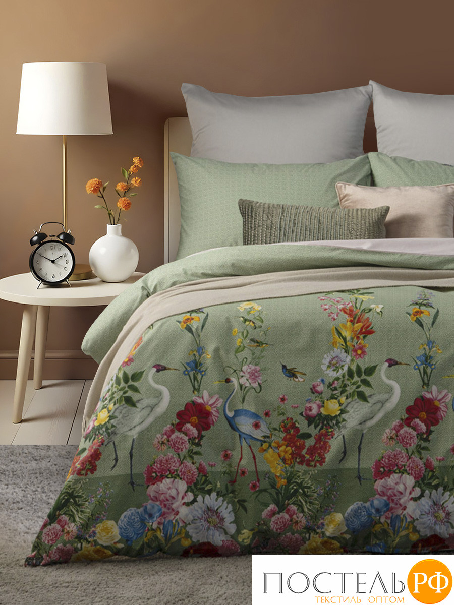 Двусторонний дизайн постельного белья позволяет легко менять облик спальни по вашему желанию. Комплект привлекает внимание своим ярким и живописным дизайном. Он выполнен в нежных тонах, которые создают ощущение свежести и природной гармонии. Основной узор состоит из красочных цветочных мотивов и изображений изящных птиц, что придает комплекту экзотический и романтичный вид. Эти яркие элементы добавляют жизни и радости в интерьер, создавая атмосферу уюта и тепла. Комплект отлично впишется в стили прованс или бохо, подчеркивая индивидуальность и стиль вашего пространства. Он станет прекрасным акцентом, создающим комфортное и вдохновляющее место для отдыха.