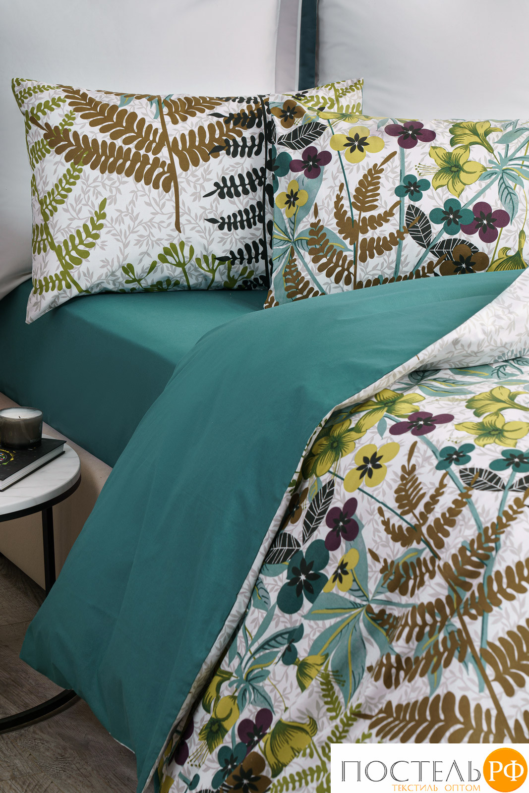 Двусторонний дизайн постельного белья позволяет легко менять облик спальни по вашему желанию. Комплект впечатляет своим ярким и живописным дизайном. Он оформлен в насыщенных природных оттенках от глубокого зеленого до теплого коричневого, что создает ощущение свежести и гармонии. Основной узор состоит из разнообразных зелёных листьев и ярких цветов, которые придают комплекту экзотический и жизнерадостный вид. Эти элементы создают атмосферу, напоминающую о лете и природе, наполняя пространство уютом и легкостью. Такой комплект идеально подходит для создания расслабляющей обстановки в спальне, способствуя хорошему сну и отдыху. Он станет великолепным акцентом в интерьере, подчеркивающим вашу индивидуальность и привносящим нотки стиля.
