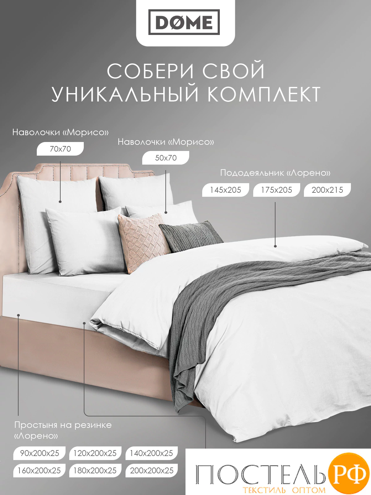 Бренд DOME в своём ассортименте имеет в том же цвете комплекты наволочек 70х70 - 2 шт и 50х70 – 2 шт в коллекции «МОРИСО», простыни классические в коллекции «ФАРОСТА», простыни на резинке в коллекции «ЛОРЕНО», что даст возможность собрать гармоничный набор отдельных предметов для вашей спальни дома или в загородном доме.