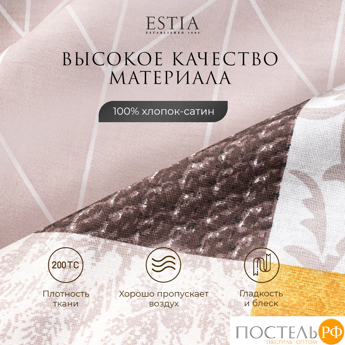 Постельное белье Лафонт впечатляет своим ярким и современным дизайном. Комплект выполнен в насыщенных коричневых тонах, дополненных акцентами желтого и белого, создавая эффектные геометрические узоры. Принт состоит из разнообразных треугольников и полос, которые добавляют динамичности и текстурности. Светлые ткань-компаньон с нежным геометрическим рисунком гармонично завершает образ, придавая комплекту легкость и стиль. Такой дизайн идеально подходит для современных интерьеров, добавляя в пространство тепло и уют. Постельное белье ESTIA станет ярким акцентом в вашей спальне и обеспечит комфортный сон, наполняя атмосферу домашним очарованием.