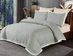 Простыня 2,3*2,5 , наволочки 50*70 + 5см отстрочка «ушки», 70*70+ 5 см «ушки» и пододеяльник 2*2,2+5см «ушки» , замок на пододеяльнике внизу.