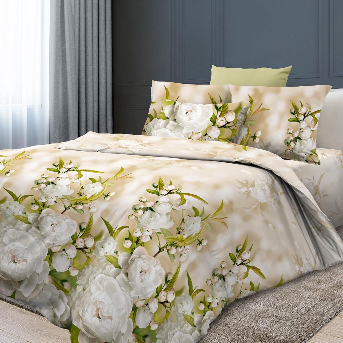 Нежные цветы создают атмосферу уюта и спокойствия, делая каждую ночь волшебной. Обновите ваше спальное пространство с этим прекрасным комплектом!