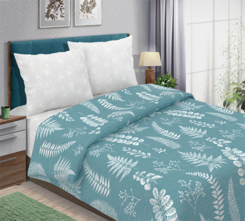 Пододеяльник выполнен из основной ткани, простыня и наволочки выполнены из ткани-компаньона.