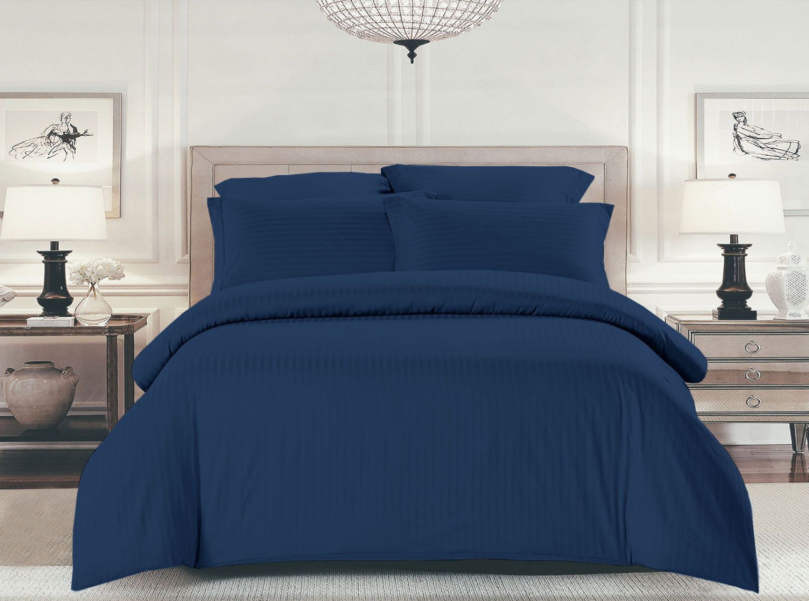 Погрузитесь в мир комфорта и стиля с комплектом постельного белья из премиального страйп-сатина. Эта новинка станет настоящим украшением вашей спальни. Глубокий классический синий цвет создает ощущение спокойствия и уюта, а уникальный рисунок с чередующимися глянцевыми и матовыми полосками добавляет элегантности._x000D_