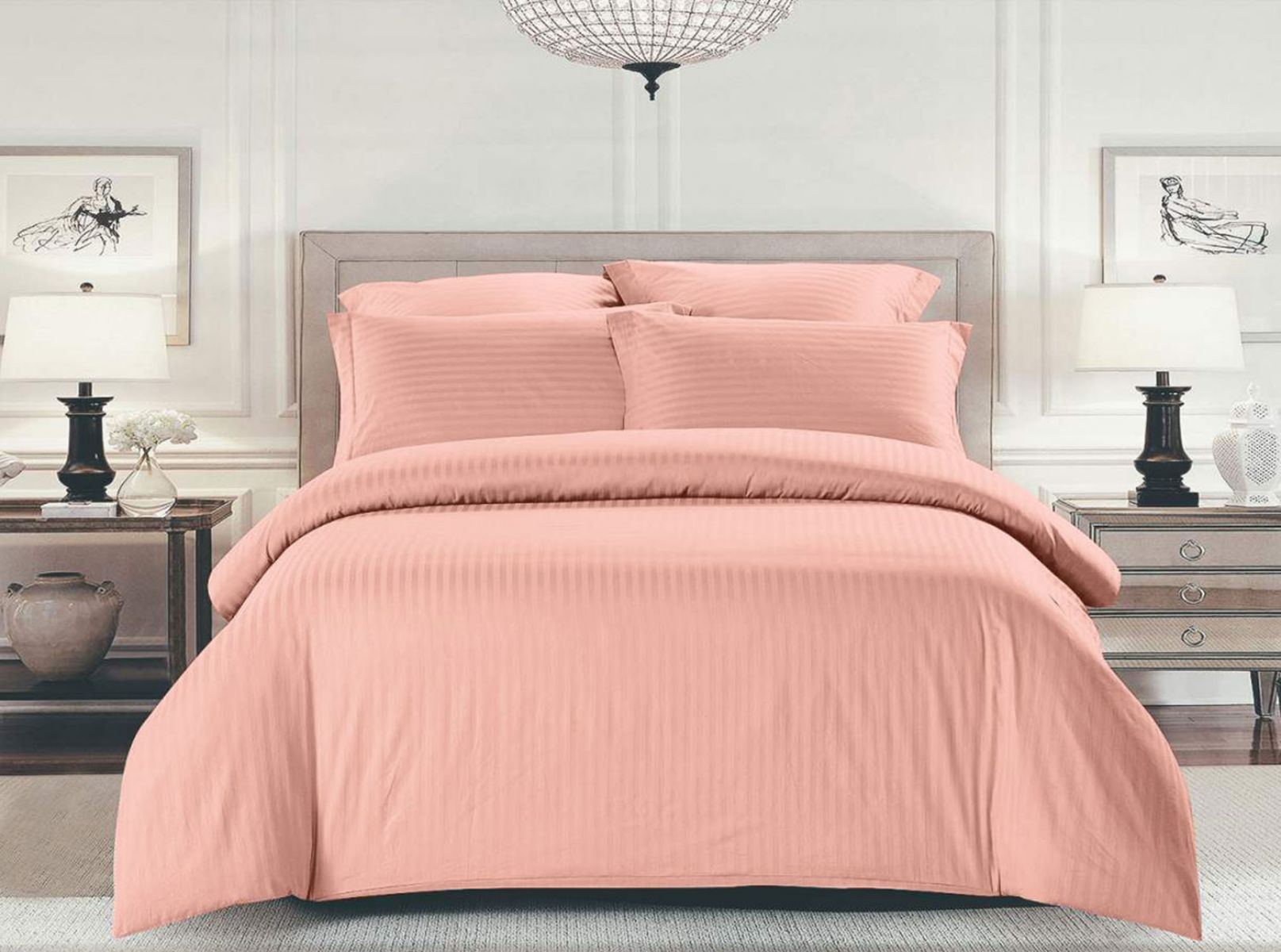 Стройте свой уют и комфорт с новым комплектом постельного белья в нежном оттенке тропического персика. Изготовленный из премиального страйп-сатина, он сочетает в себе мягкость и прочность, обеспечивая вам незабываемый сон.