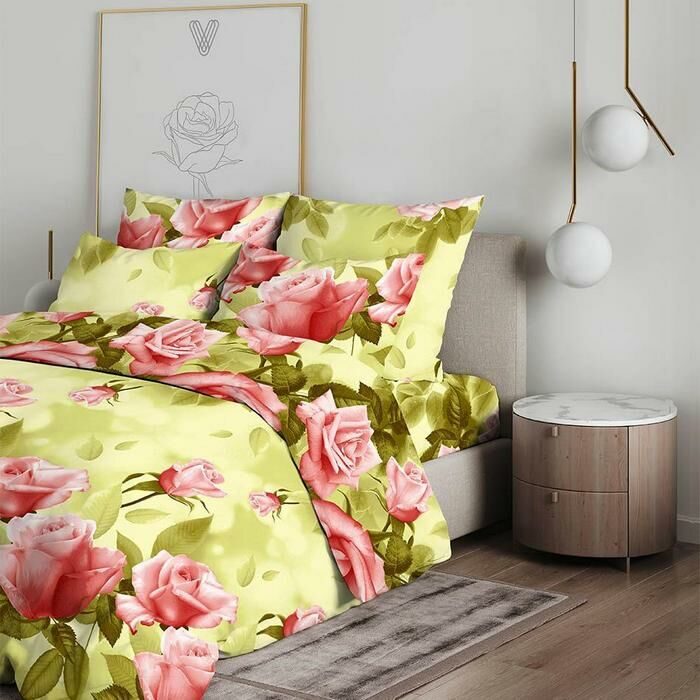 КПБ "Нежная роза" бязь хлопок 100% Семейный