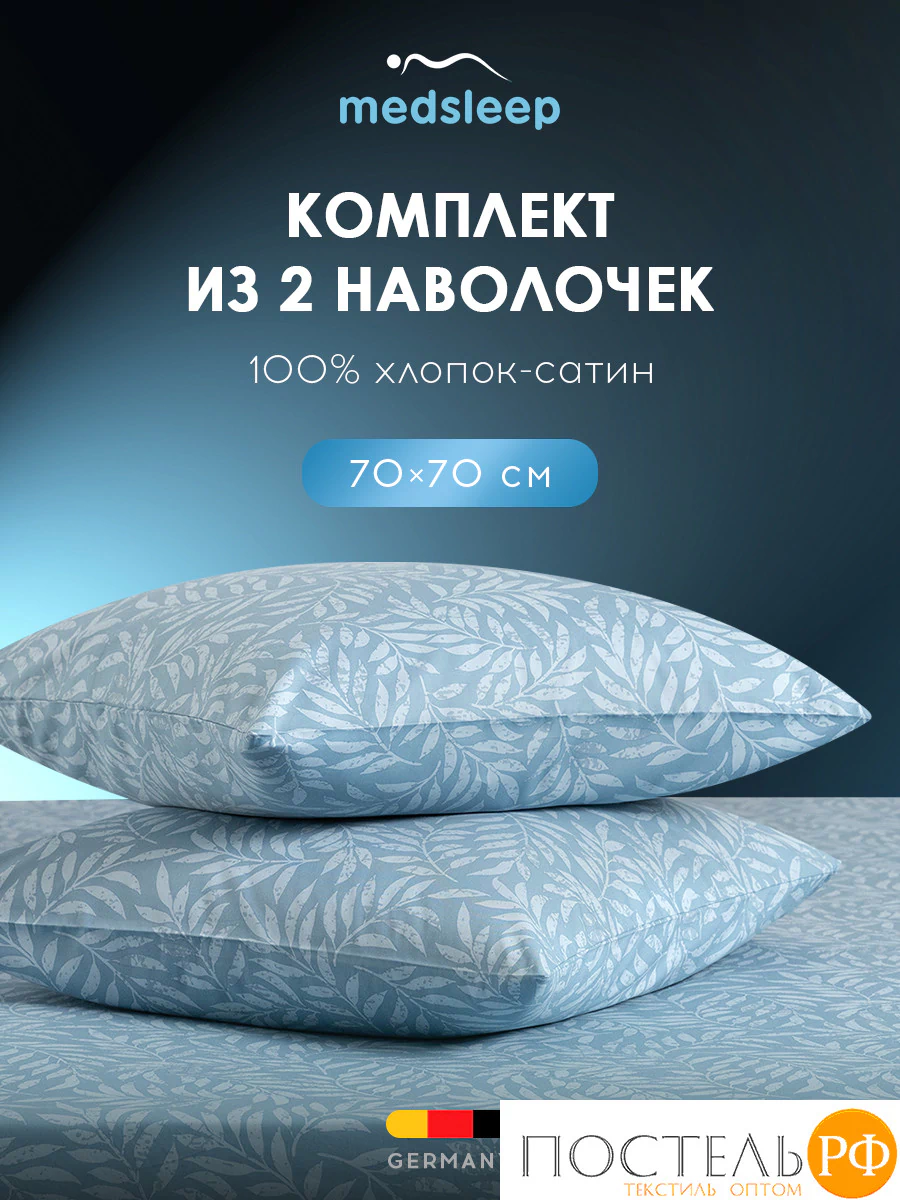 Комплект наволочек бренда MEDSLEEP коллекции «БЕАТА» размером 70х70см - 2 шт изготовлен из 100% хлопка в плетении сатин высокого качества, плотностью 110 г/м2.