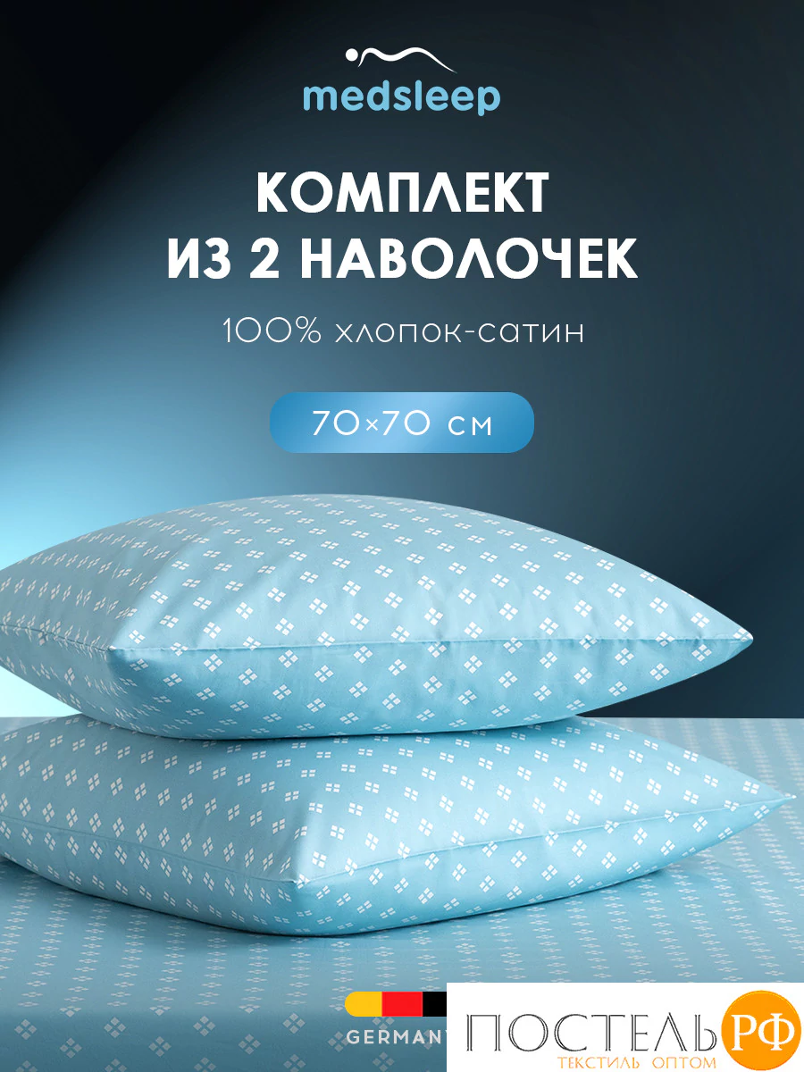 Комплект наволочек бренда MEDSLEEP коллекции «КАТАЛЕЯ» размером 70х70см - 2 шт изготовлен из 100% хлопка в плетении сатин высокого качества, плотностью 110 г/м2.