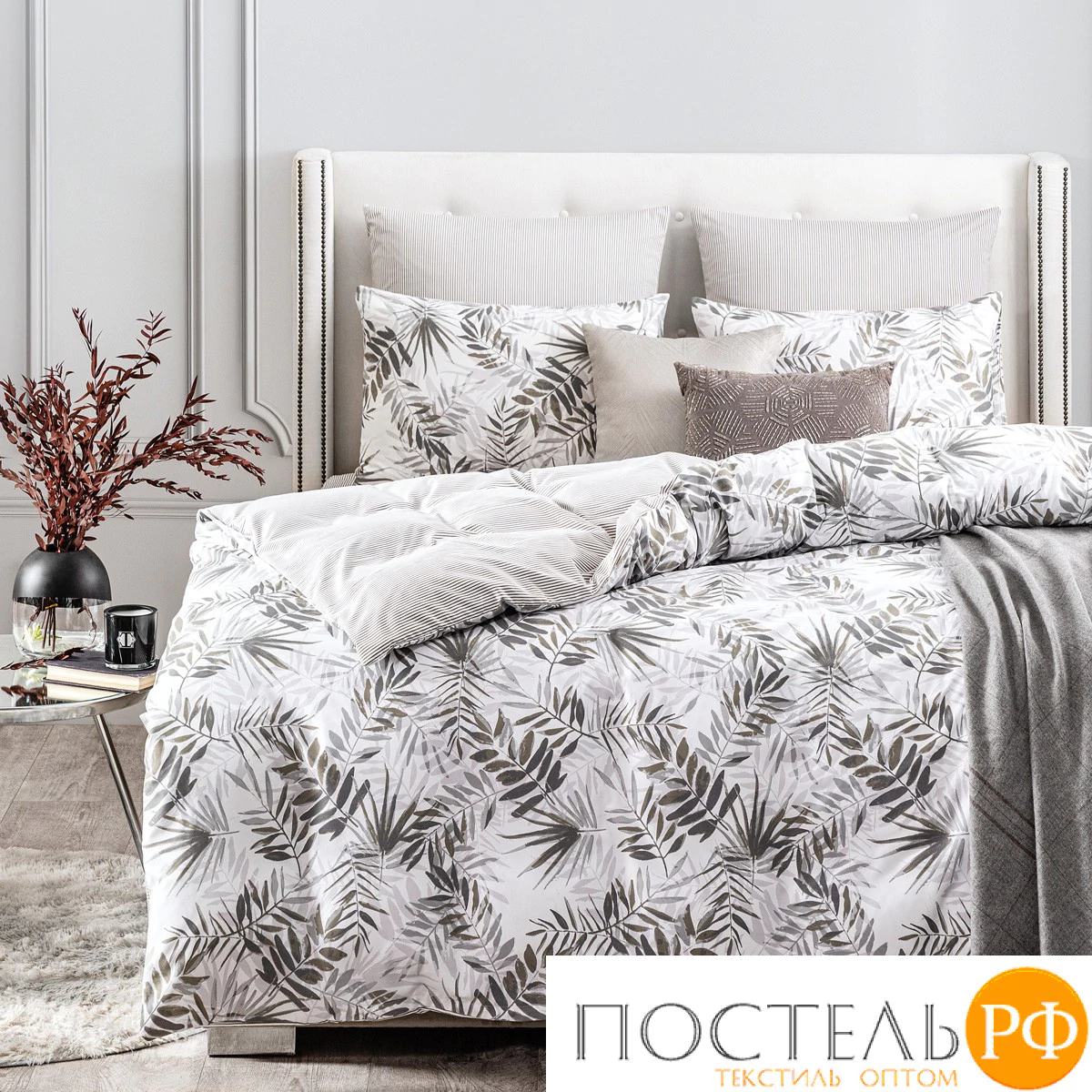 Постельное белье Лабер выполнено в нежных цветах с выразительным растительным узором, изображающим листья в оттенках серого и коричневого на светлом фоне. Этот изысканный принт создает атмосферу свежести и естественности, идеально подходя для создания уюта в спальне. Основная текстура белья гармонично сочетается с тонкими полосками на ткани-компаньон, добавляя баланс и сдержанность в общий дизайн. Такой комплект станет отличным выбором для современных и эклектичных интерьеров, привнося нотки стиля и элегантности. Мягкие цвета и выразительный дизайн способствуют созданию комфортной атмосферы, обеспечивая полноценный отдых и расслабление. Этот набор станет стильным акцентом, подчеркивающим вашу индивидуальность и любовь к натуральным мотивам.