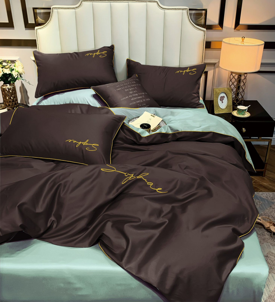 КПБ Mency Winni однотонный с вышивкой на резинке по кругу MENWOV010