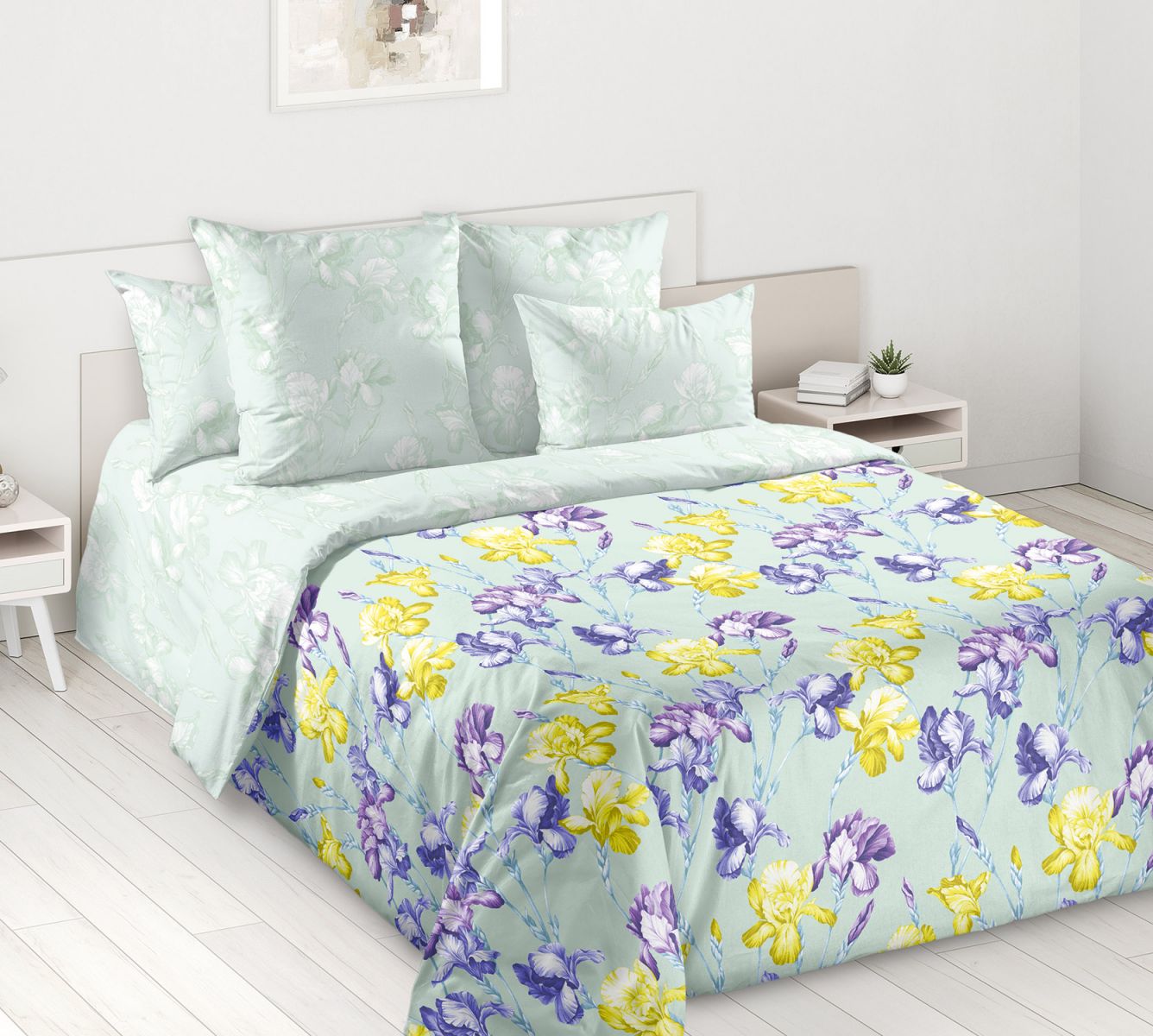 Наволочка Благоухание выполнена из основной ткани (как верх пододеяльника на фото).