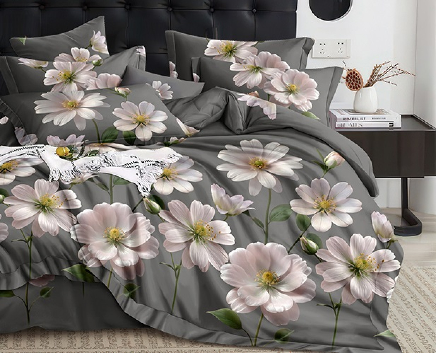 Постельное белье изготовлено из натуральной 100%-ой хлопковой ткани плотного плетения. Экологически чистый природный материал, способный сохранить яркость рисунка после множества стирок. Хорошо пропускает воздух, создавая комфортную атмосферу в вашей кровати.
