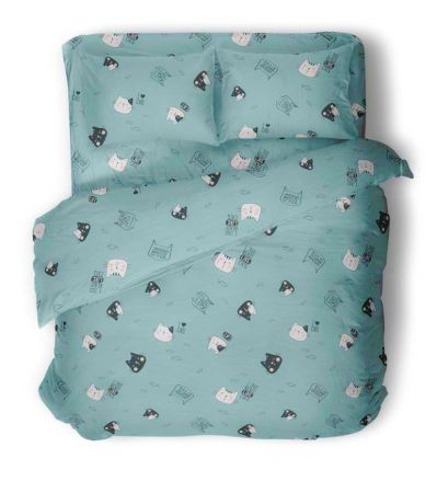 Пододеяльник 2,0 сп бязь ЛЮКС бесшовный Meow арт. 0671/1 (мятный)