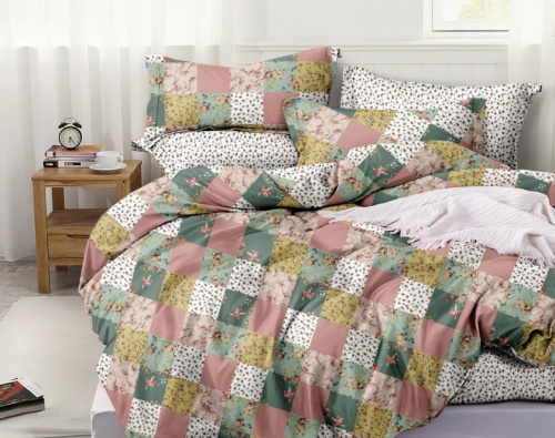 Комплект выполнен "без оборок", наволочки с клапаном "без ушек". Пододеяльник с разрезом по нижнему краю Поплин плотностью 110-115 г/кв.м, 100% хлопок