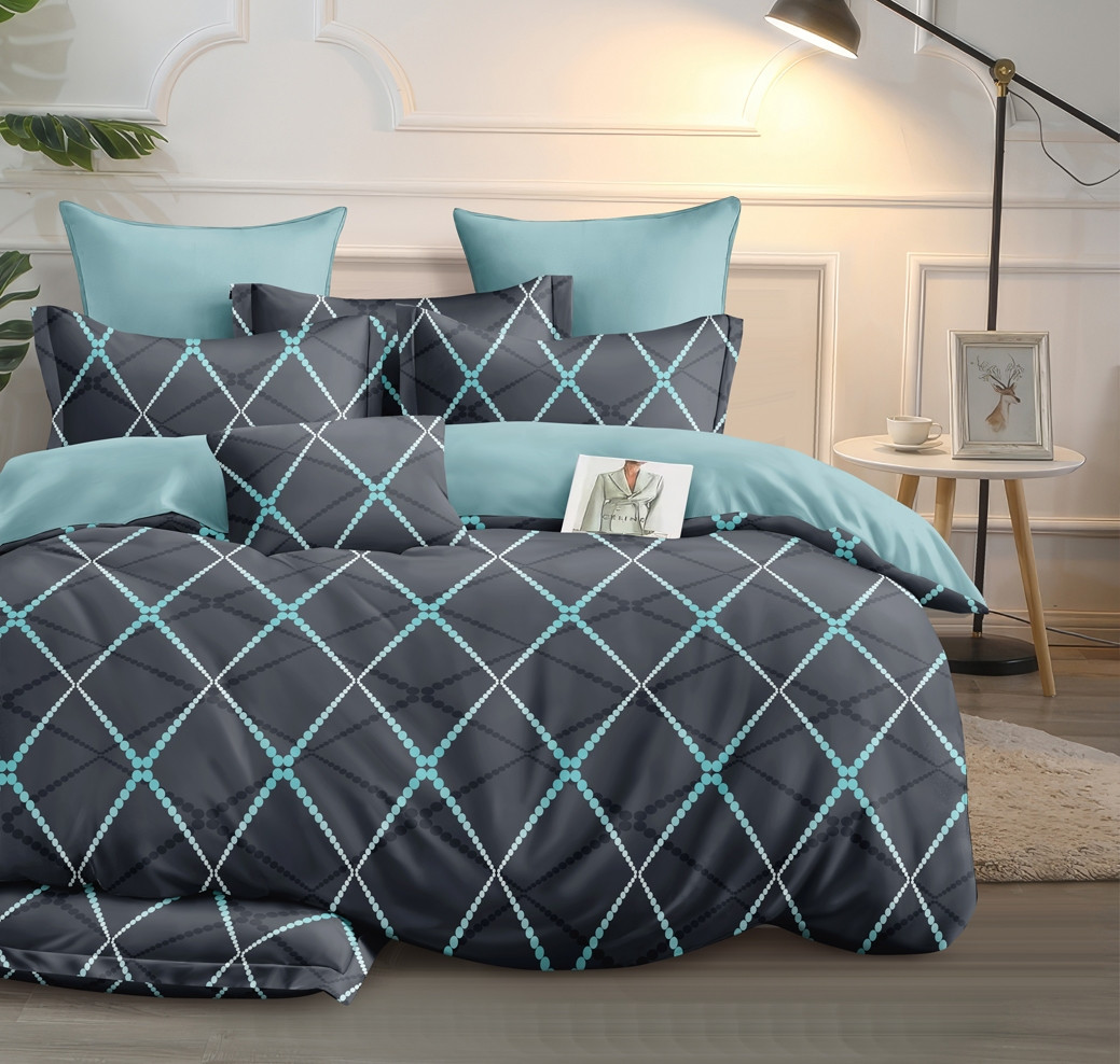Поплин плотностью 110-115 г/кв.м, 100% хлопок Комплект выполнен "без оборок", наволочки с клапаном "без ушек". Пододеяльник с разрезом по нижнему краю