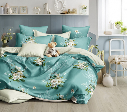 Комплект выполнен "без оборок", наволочки с клапаном "без ушек". Пододеяльник с разрезом по нижнему краю Поплин плотностью 110-115 г/кв.м, 100% хлопок