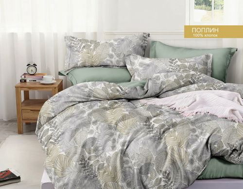 Комплект выполнен "без оборок", наволочки с клапаном "без ушек". Пододеяльник с разрезом по нижнему краю Поплин плотностью 110-115 г/кв.м, 100% хлопок