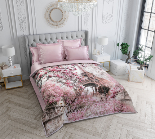 Пододеяльник и наволочки декорированы ушками 5 см и плоским контрастным сатиновым кантом. Комплект упакован в подарочную коробку.