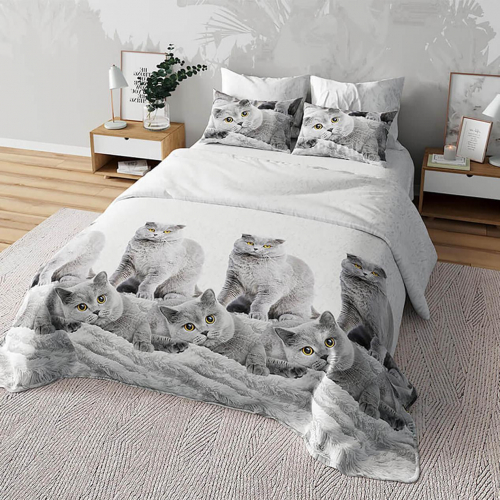 Комплекты постельного белья отшиваются с наволочками 70*70 в количестве 2 штук, упаковываются в прозрачный пакет ПВХ и комплектуются картонным вкладышем с ярким печатным изображением.