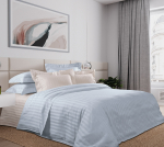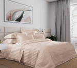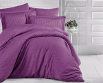 Страйп-сатин имеет жаккардовую текстуру - чередование полос, часть из которых переливается как шелк, а часть остается матовой. Благодаря своем плетению, данная ткань имеет высокую прочность и износостойкость, при этом мягкая и приятная к телу, мало мнется и практически не дает усадки.