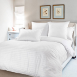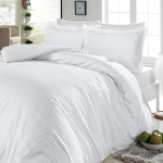 Постельное белье из страйп-сатина белого цвета. Страйп-сатин из 100% хлопка, плотность ткани 130-135 гр/м2. Полосы 1*1 см. Комплекты отшиваются с наволочками 50*70 см или 70*70 см.
