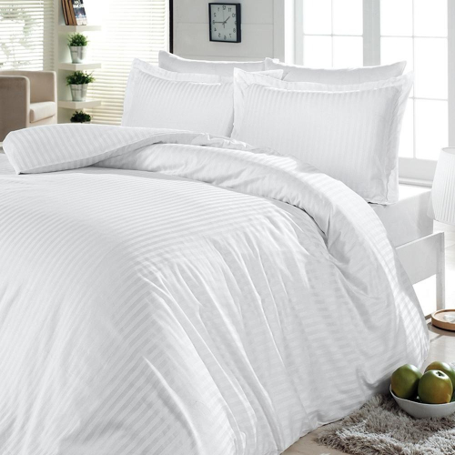 Постельное белье страйп-сатин Лакшери / Белый полоса 1х1